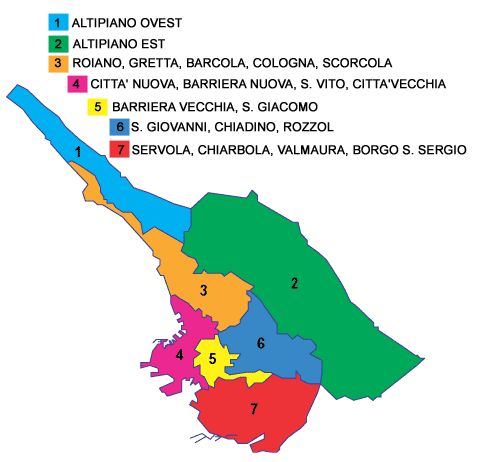territorio del comune di Trieste è ripartito in 7 circoscrizioni |